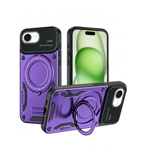 Newface iPhone 16E Kılıf Joy Lens Standlı Kapak - Mor