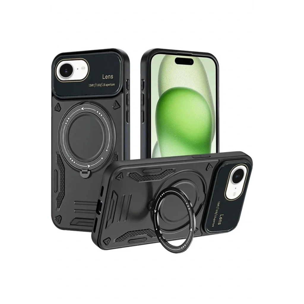 Newface iPhone 16E Kılıf Joy Lens Standlı Kapak - Siyah