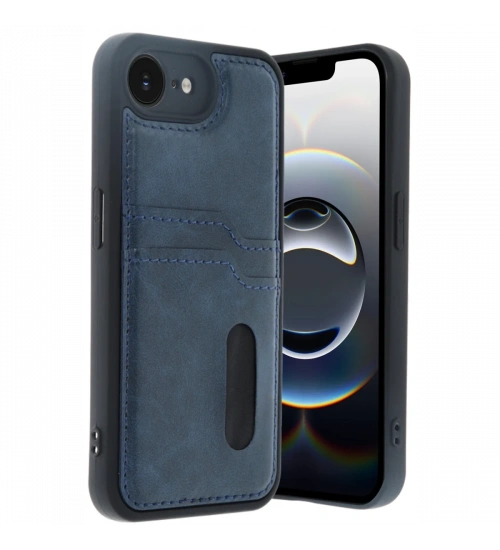 Newface iPhone 16E Kılıf Sara Kartvizitli Deri Kılıf - Lacivert