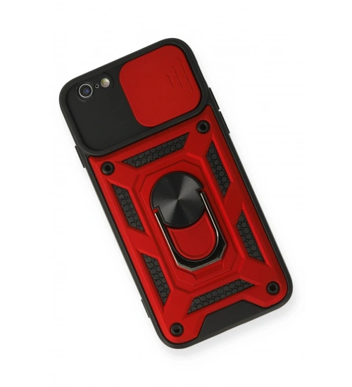 Newface iPhone 6 Kılıf Pars Lens Yüzüklü Silikon - Kırmızı