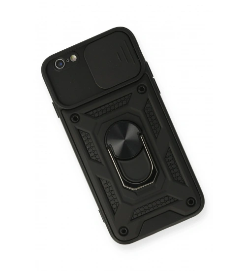 Newface iPhone 6 Kılıf Pars Lens Yüzüklü Silikon - Siyah