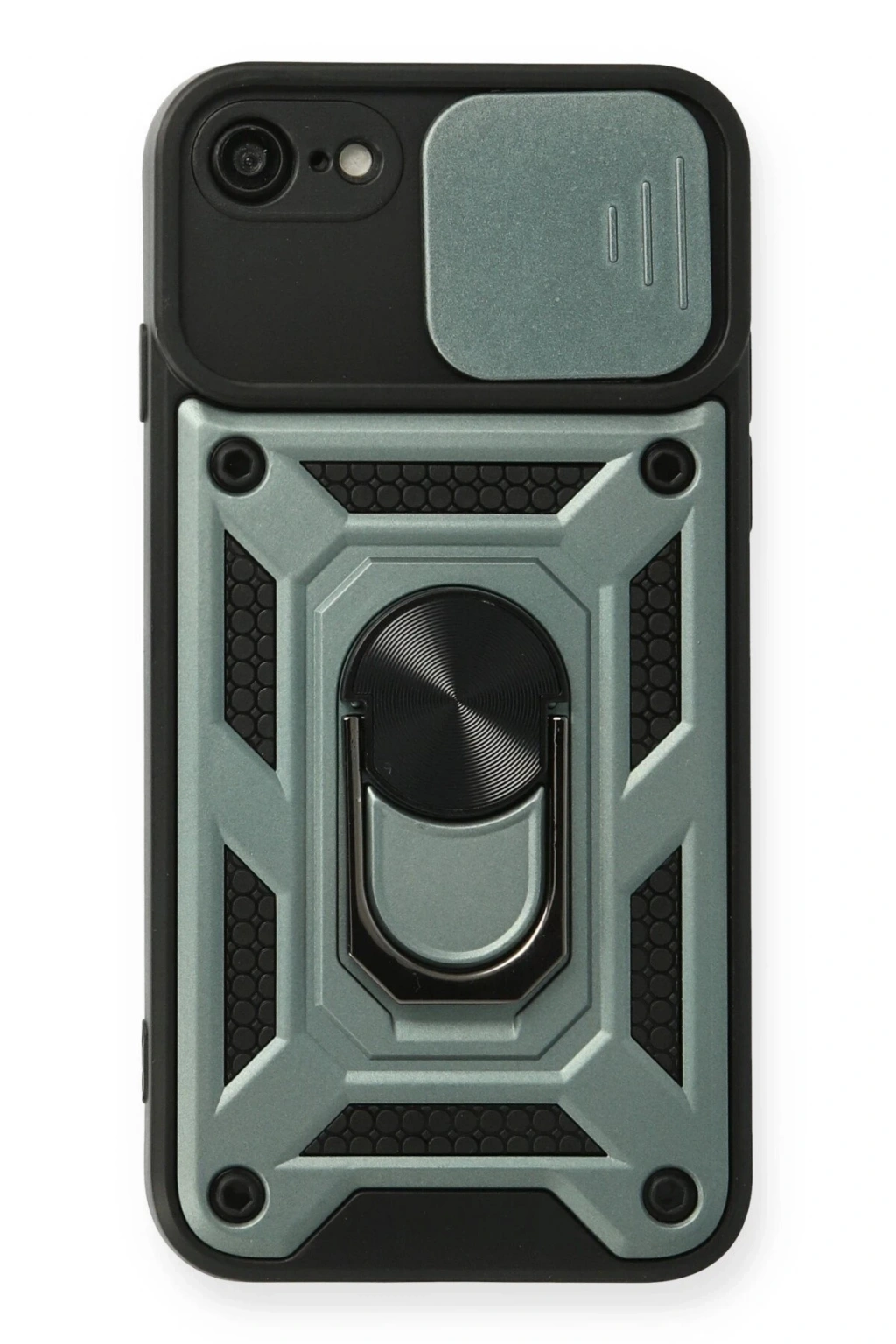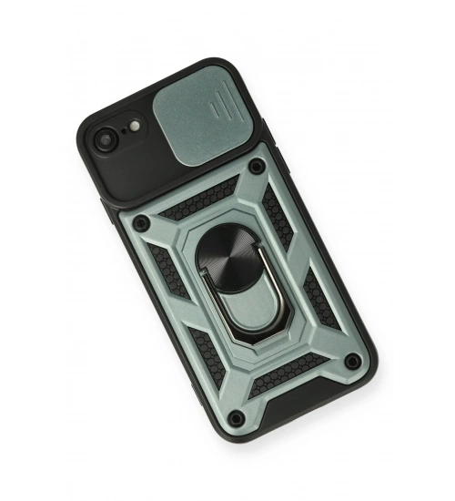 Newface iPhone 7 Kılıf Pars Lens Yüzüklü Silikon - Yeşil
