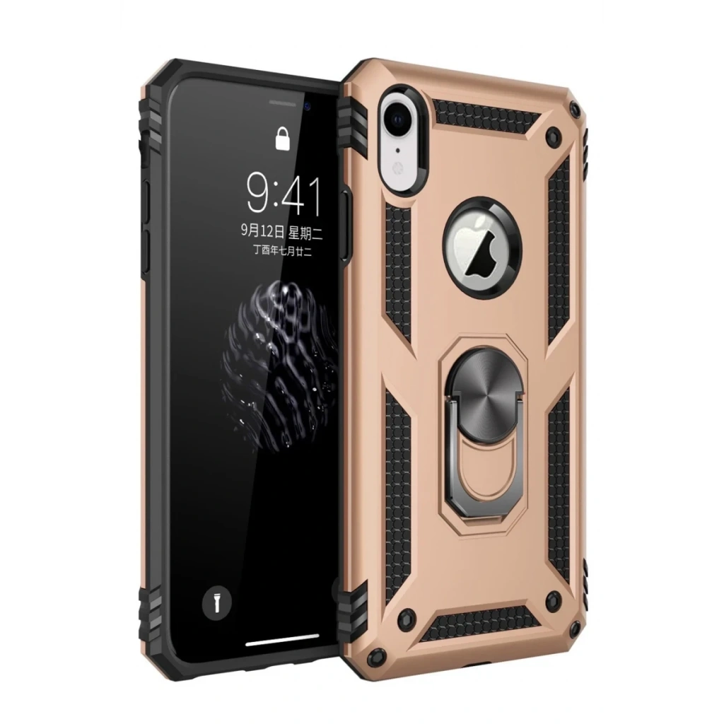 Newface iPhone XR Kılıf Sofya Yüzüklü Silikon Kapak - Gold