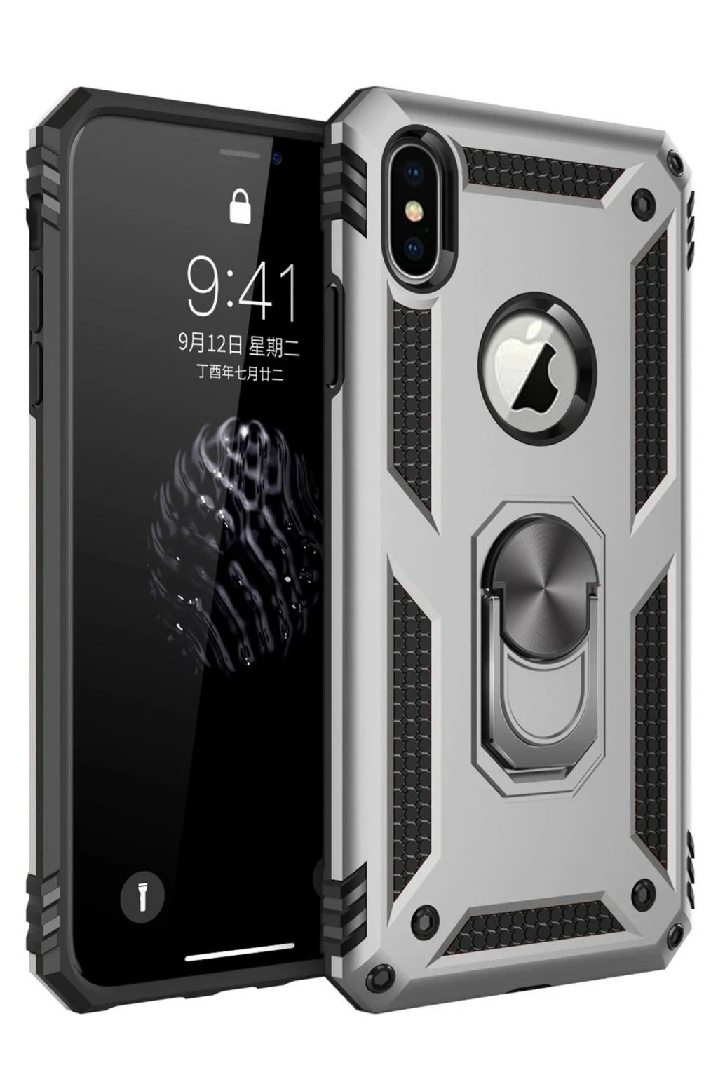 Newface iPhone XS Max Kılıf Sofya Yüzüklü Silikon Kapak - Gümüş