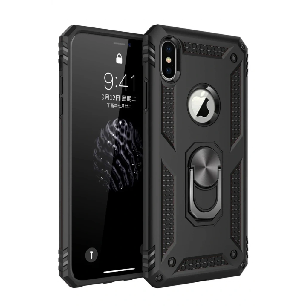 Newface iPhone XS Max Kılıf Sofya Yüzüklü Silikon Kapak - Siyah