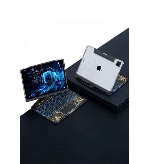 Gelişmiş esneklik, ister iş ister eğlence için mükemmel görüntüleme açıları sağlar. 180° ve 360° döner tasarımı sayesinde kılıf, stand olarak kullanılabilir veya tamamen kapanarak bir koruyucu kılıf görevi görebilir.Açıkken klavye modu, kapalıyken koruma modu ve dönerken stand modu arasında kolay geçiş yapabilirsiniz.