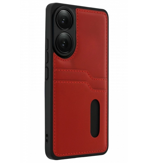 Newface Oppo A38 Sara Kartvizitli Deri Kılıf - Kırmızı