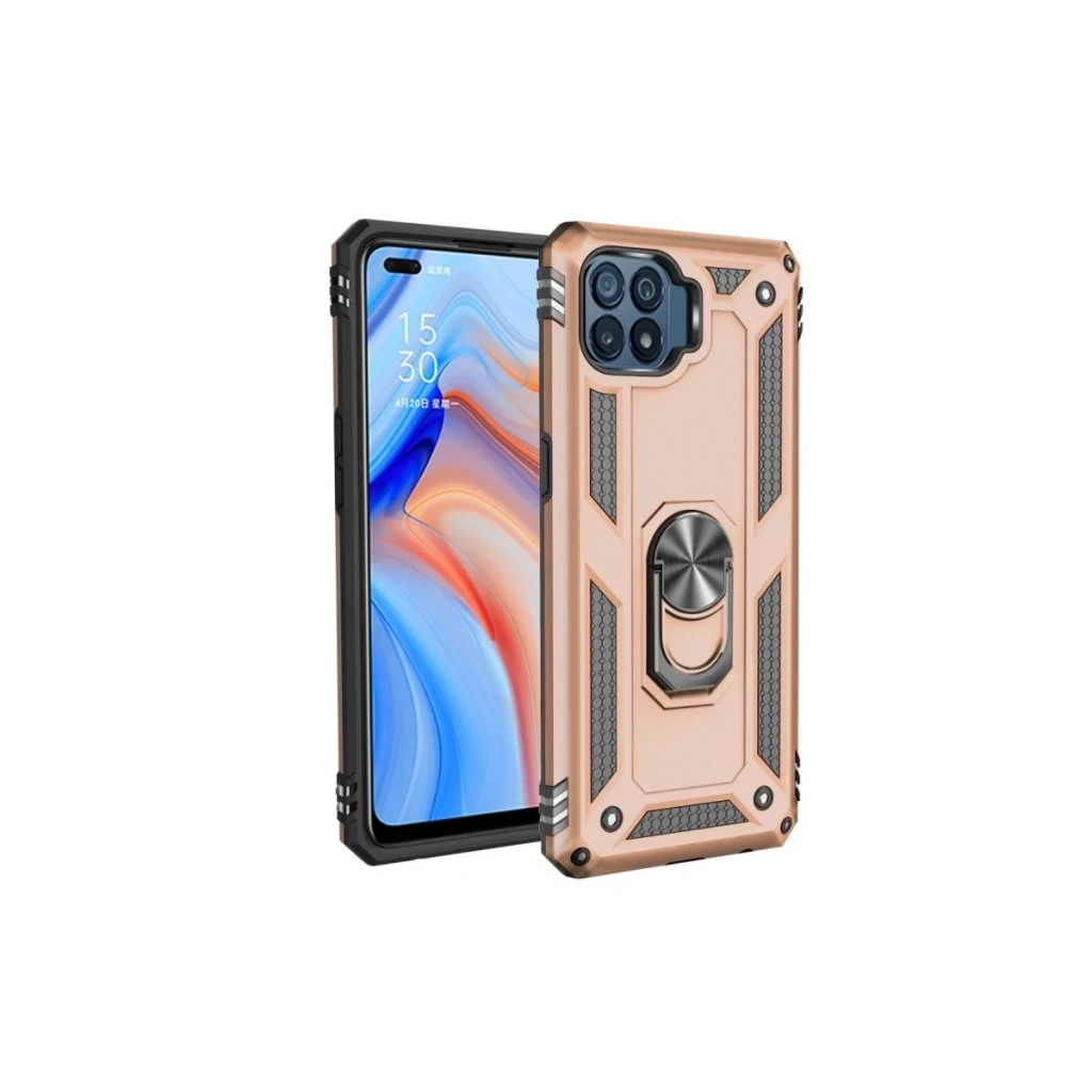 Newface Oppo Reno 4 Lite Kılıf Sofya Yüzüklü Silikon Kapak - Gold