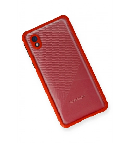 Newface Samsung Galaxy A01 Core Kılıf Miami Şeffaf Silikon - Kırmızı