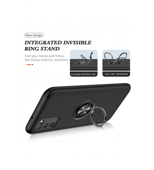 Newface Samsung Galaxy A02S Kılıf Elit Yüzüklü Kapak - Siyah