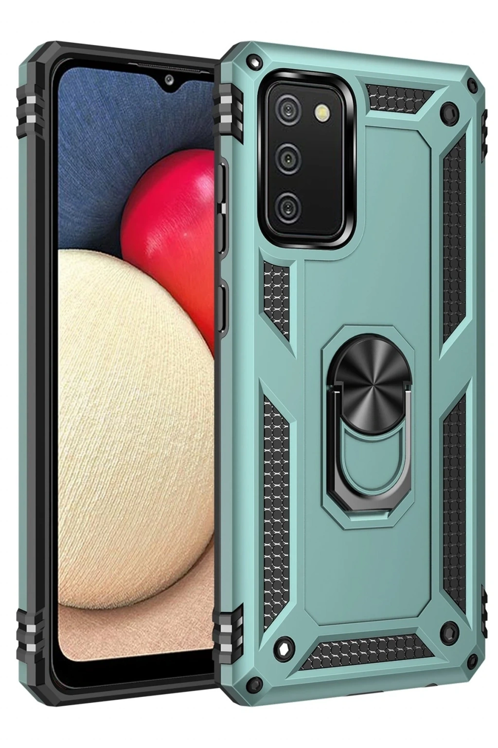 Newface Samsung Galaxy A02S Kılıf Sofya Yüzüklü Silikon Kapak - Yeşil
