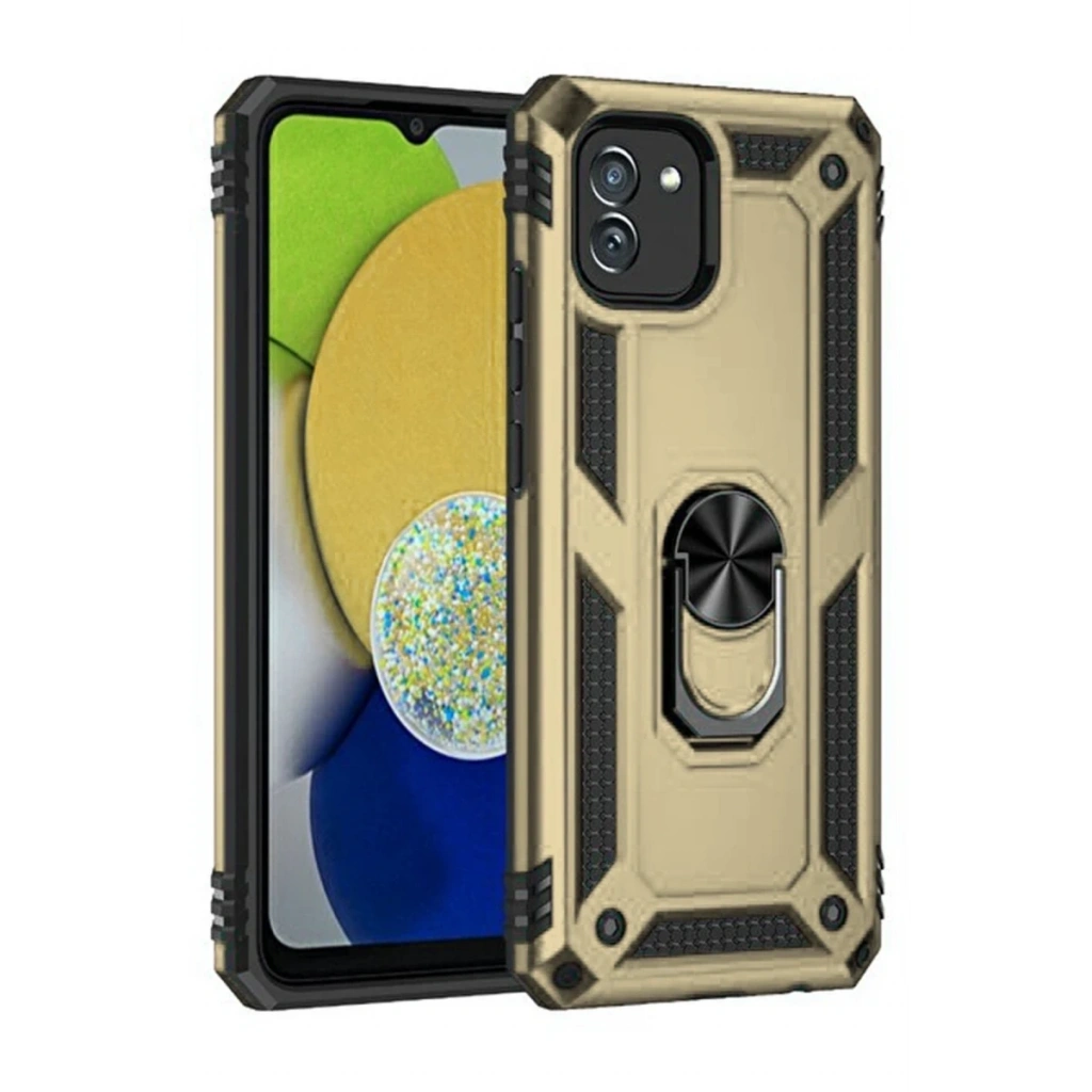Newface Samsung Galaxy A03 Kılıf Sofya Yüzüklü Silikon Kapak - Gold