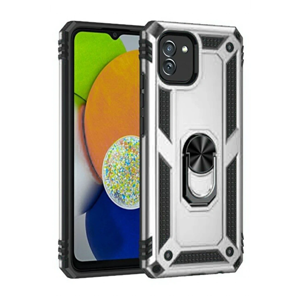 Newface Samsung Galaxy A03 Kılıf Sofya Yüzüklü Silikon Kapak - Gümüş