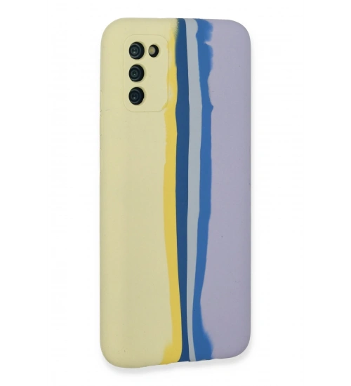 Newface Samsung Galaxy A03S Kılıf Ebruli Lansman Silikon - Sarı-Lila