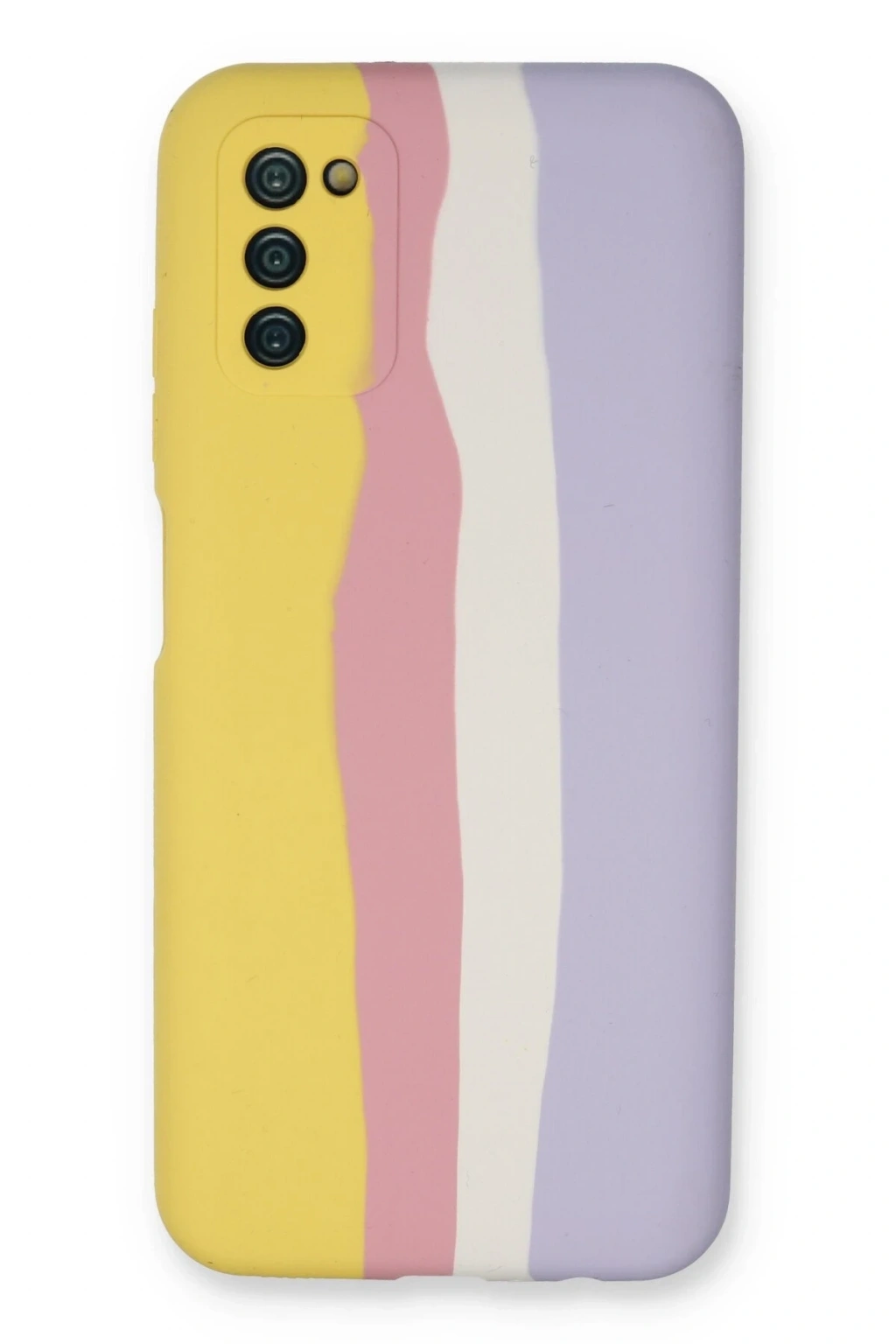 Newface Samsung Galaxy A03S Kılıf Ebruli Lansman Silikon - Sarı-Mavi