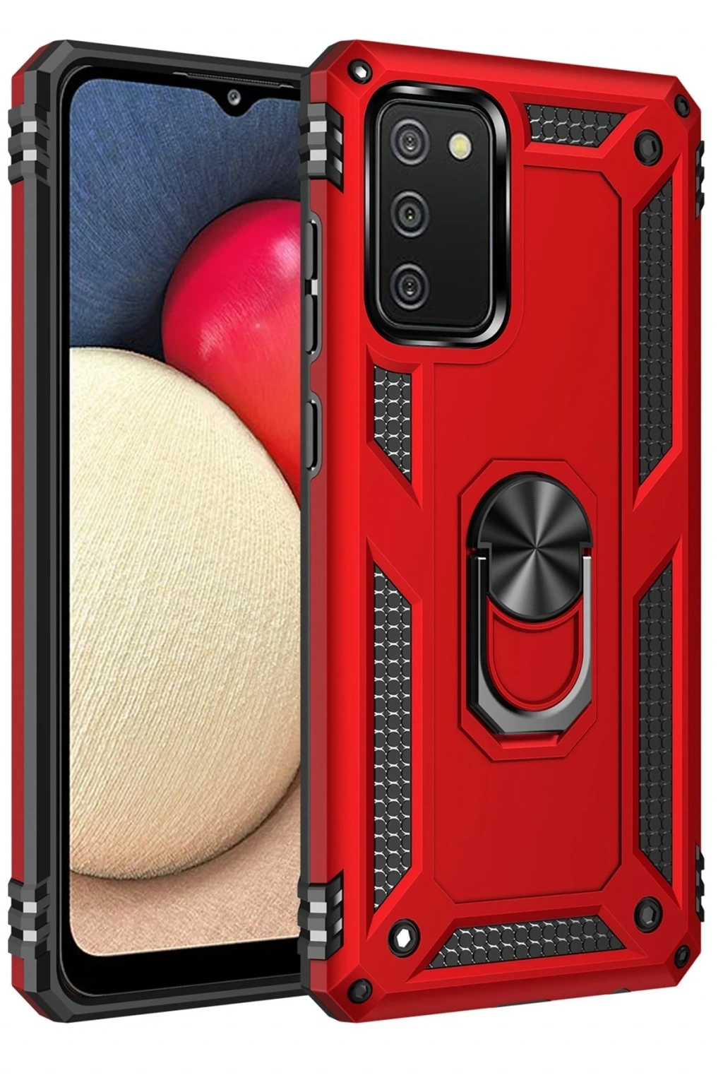 Newface Samsung Galaxy A03S Kılıf Sofya Yüzüklü Silikon Kapak - Kırmızı