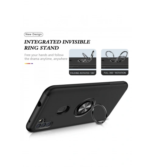 Newface Samsung Galaxy A11 Kılıf Elit Yüzüklü Kapak - Siyah