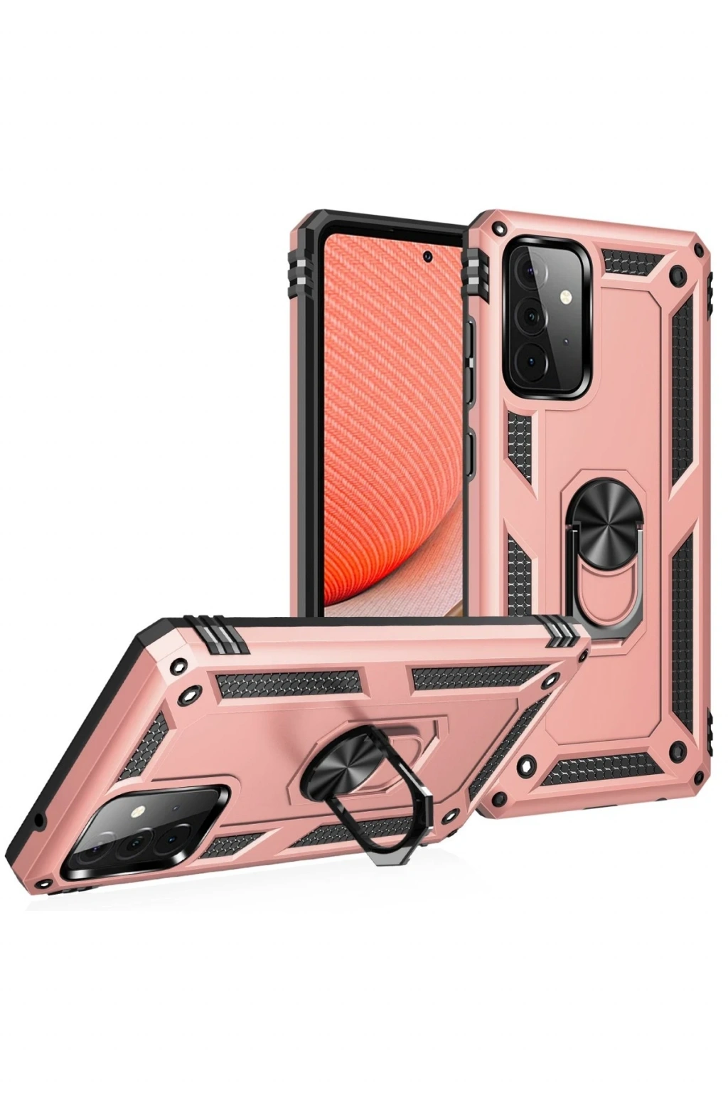 Newface Samsung Galaxy A72 Kılıf Sofya Yüzüklü Silikon Kapak - Rose