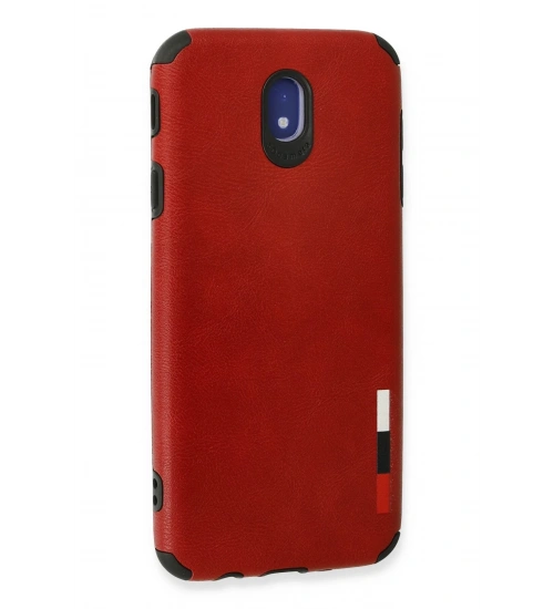 Newface Samsung Galaxy J7 Pro / J730 Kılıf Loop Deri Silikon - Kırmızı
