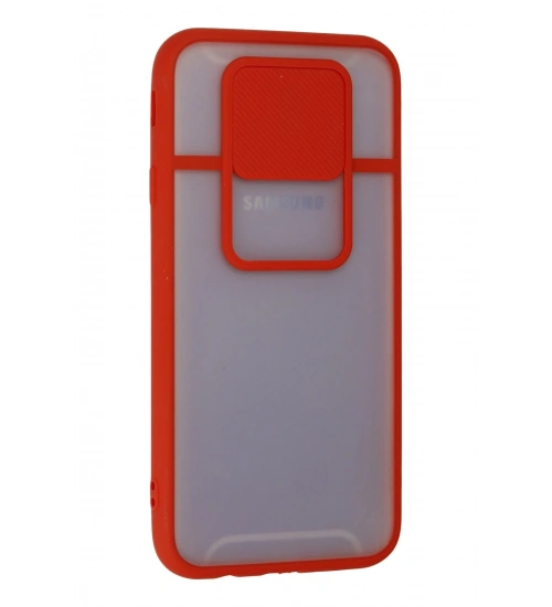 Newface Samsung Galaxy J7 Pro / J730 Kılıf Palm Buzlu Kamera Sürgülü Silikon - Kırmızı