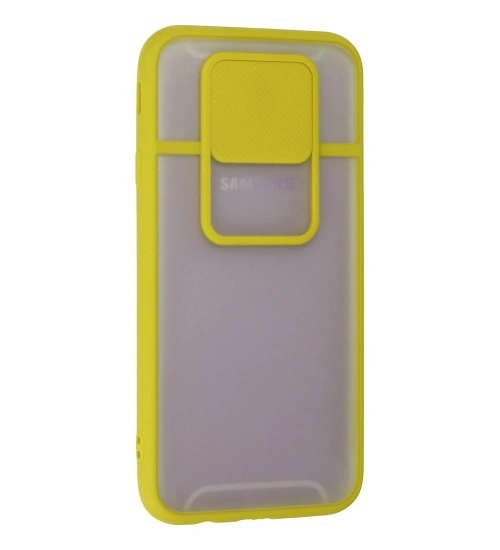 Newface Samsung Galaxy J7 Pro / J730 Kılıf Palm Buzlu Kamera Sürgülü Silikon - Sarı