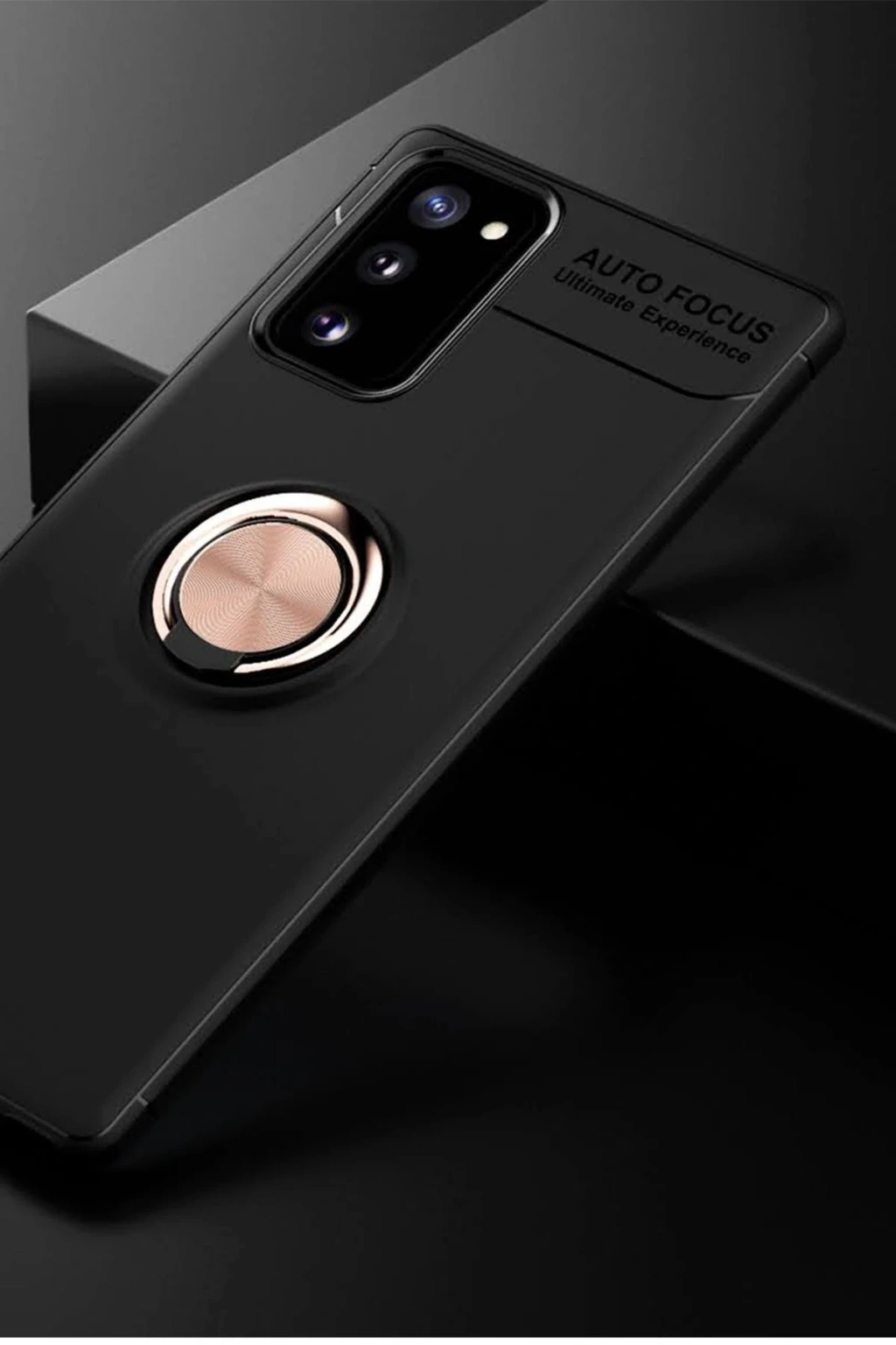 Newface Samsung Galaxy Note 20 Kılıf Range Yüzüklü Silikon - Siyah-Gold