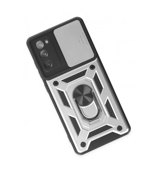 Newface Samsung Galaxy S20 FE Kılıf Pars Lens Yüzüklü Silikon - Gümüş