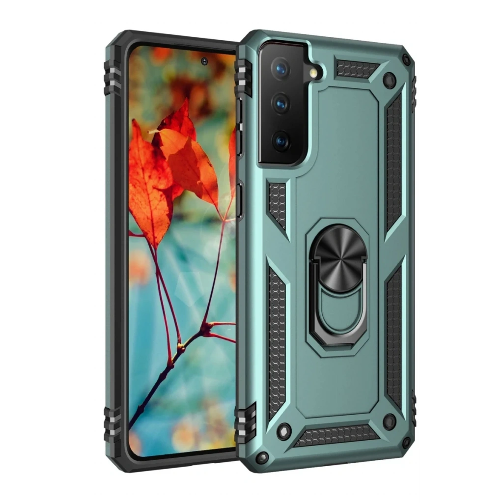Newface Samsung Galaxy S21 Kılıf Sofya Yüzüklü Silikon Kapak - Yeşil