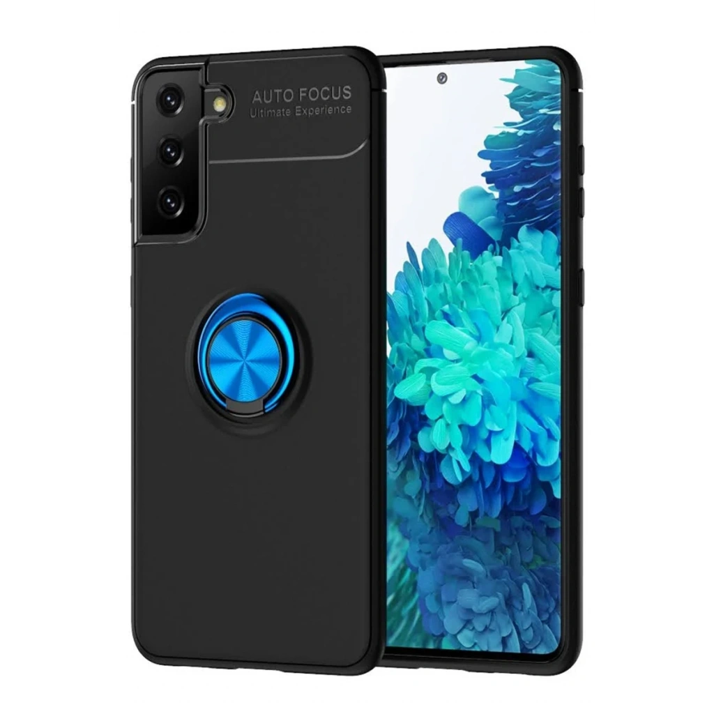 Newface Samsung Galaxy S21 Plus Kılıf Range Yüzüklü Silikon - Siyah-Mavi