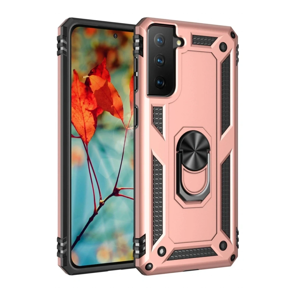 Newface Samsung Galaxy S21 Plus Kılıf Sofya Yüzüklü Silikon Kapak - Rose