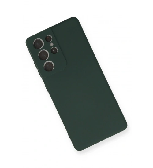 Newface Samsung Galaxy S21 Ultra Kılıf Nano içi Kadife Silikon - Koyu Yeşil