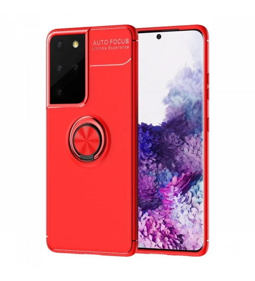 Newface Samsung Galaxy S21 Ultra Kılıf Range Yüzüklü Silikon - Kırmızı