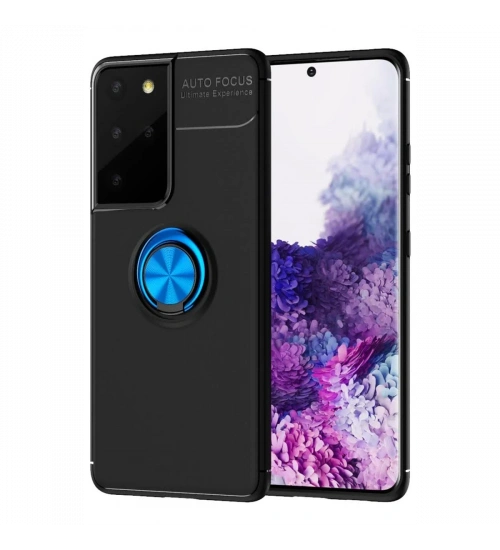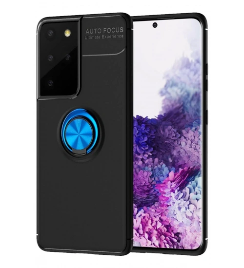 Newface Samsung Galaxy S21 Ultra Kılıf Range Yüzüklü Silikon - Siyah-Mavi