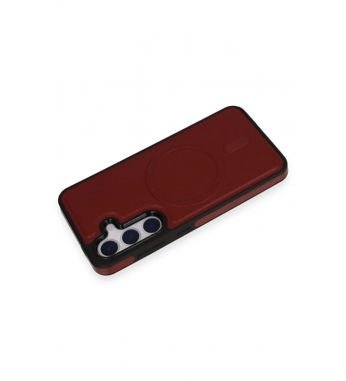 Newface Samsung Galaxy S24 Kılıf Ozzi Magsafe Deri Kapak - Kırmızı