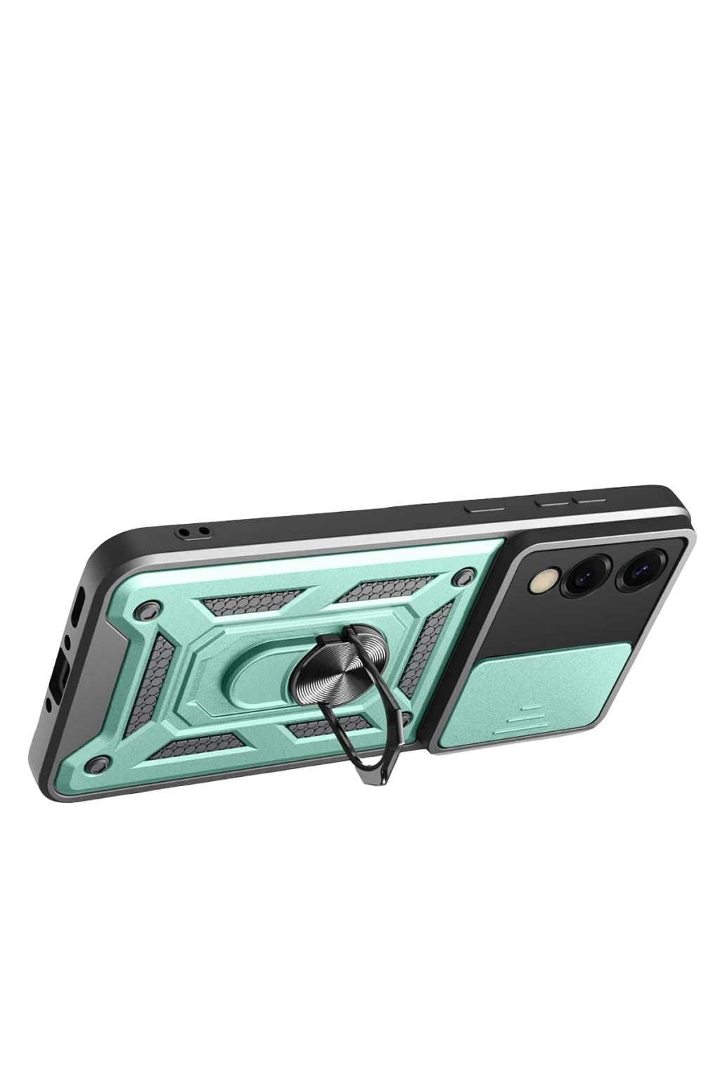 Kılıfın arka kısmında yer alan entegre metal halka hem tutucu hem de stand olarak işlev görür. Eller serbest video izleme, içerik görüntüleme ya da masaüstü kullanımı için idealdir.