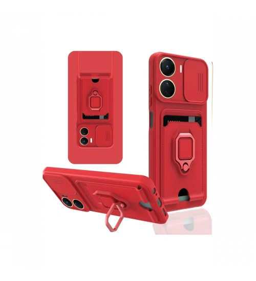 Newface Vivo Y16 Kılıf Zuma Kartvizitli Yüzüklü Silikon - Kırmızı