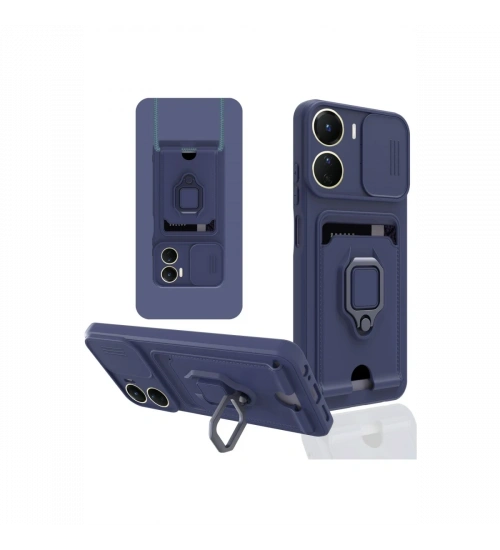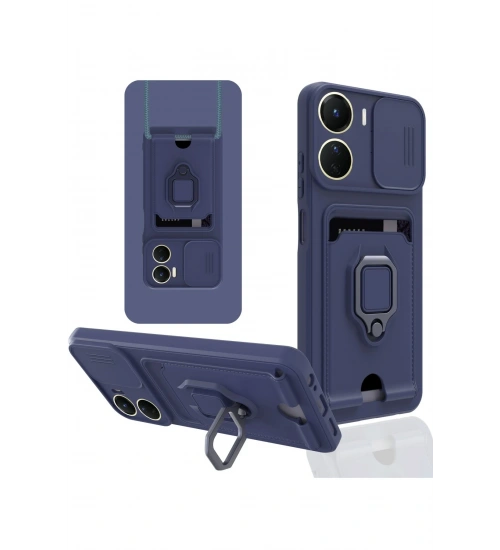 Newface Vivo Y16 Kılıf Zuma Kartvizitli Yüzüklü Silikon - Lacivert