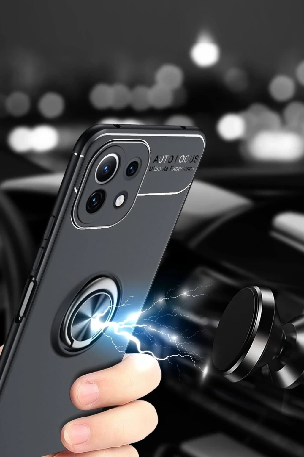 Newface Xiaomi Mİ 11 Lite Kılıf Range Yüzüklü Silikon - Siyah