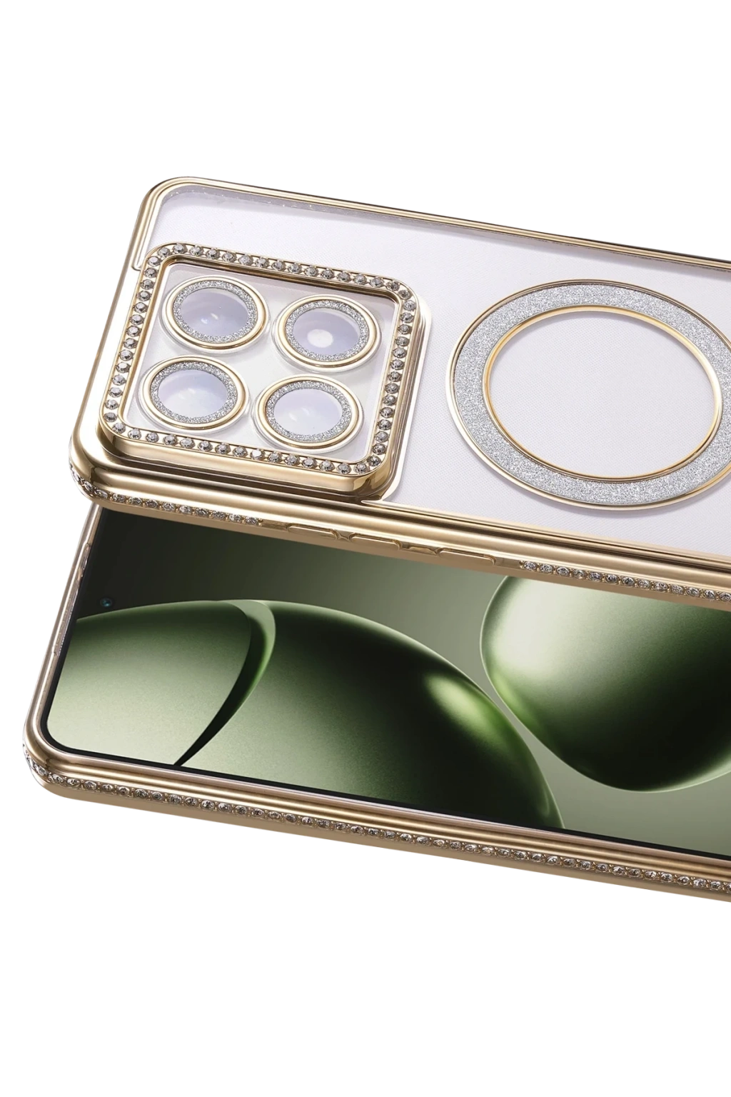 Bu kılıf, lens ve çerçevesi parlak elmaslarla tasarlanmış şık bir üründür. Cep telefonunuzun daha güzel ve çekici görünmesini sağlamakla kalmaz, aynı zamanda size farklı bir his verir.