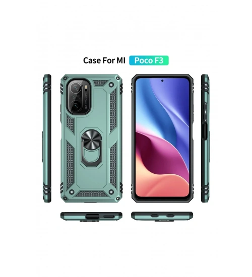 Newface Xiaomi Poco F3 Kılıf Sofya Yüzüklü Silikon Kapak - Yeşil