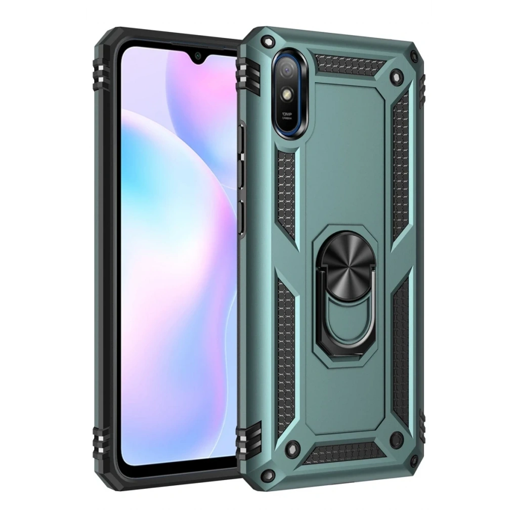 Newface Xiaomi Redmi 9A Kılıf Sofya Yüzüklü Silikon Kapak - Yeşil