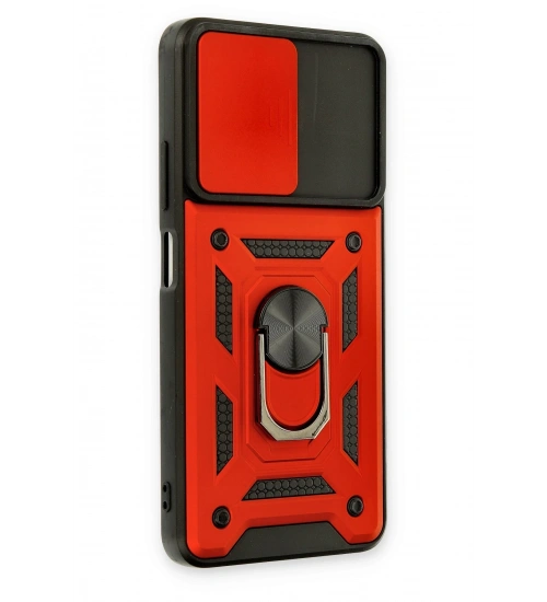 Newface Xiaomi Redmi Note 11T Kılıf Pars Lens Yüzüklü Silikon - Kırmızı