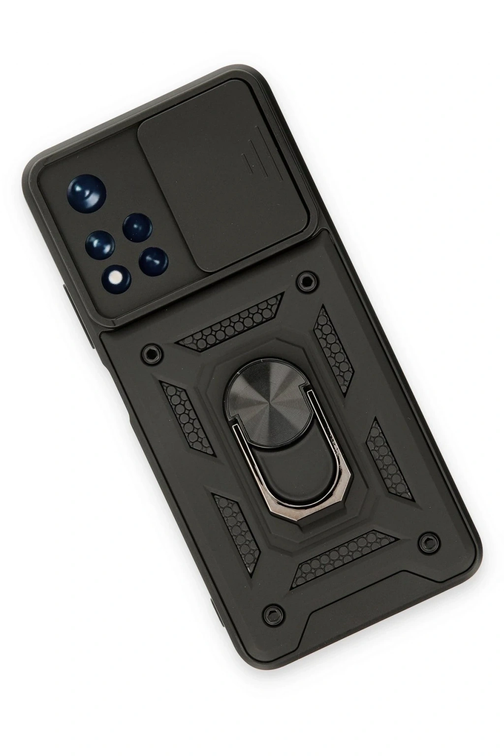 Newface Xiaomi Redmi Note 11T Kılıf Pars Lens Yüzüklü Silikon - Siyah