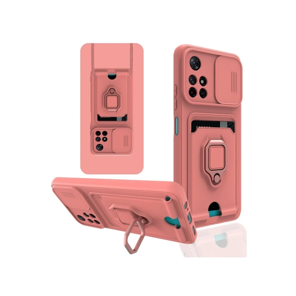 Newface Xiaomi Redmi Note 11T Kılıf Zuma Kartvizitli Yüzüklü Silikon - Pembe