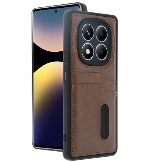 Newface Xiaomi Redmi Note 14 Pro 4G Kılıf Sara Kartvizitli Deri Kılıf - Taba