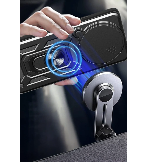 Kılıfın arka kısmında yer alan entegre metal halka hem tutucu hem de stand olarak işlev görür. Eller serbest video izleme, içerik görüntüleme ya da masaüstü kullanımı için idealdir.