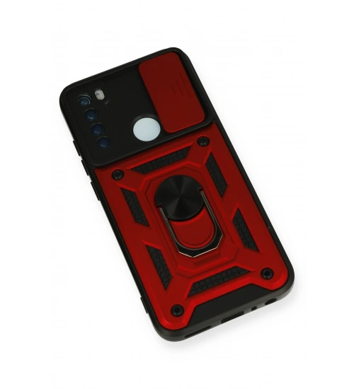 Newface Xiaomi Redmi Note 8 Kılıf Pars Lens Yüzüklü Silikon - Kırmızı