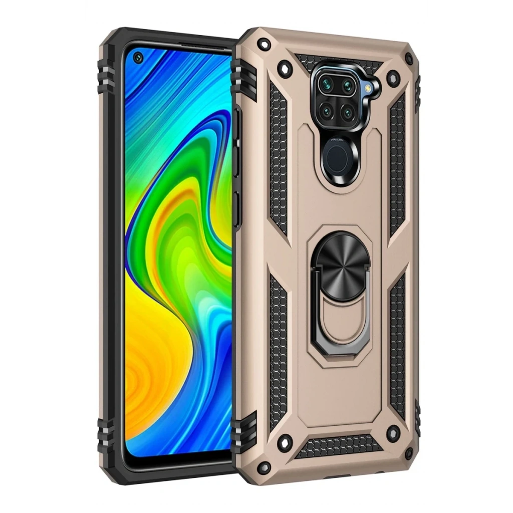 Newface Xiaomi Redmi Note 9 Kılıf Sofya Yüzüklü Silikon Kapak - Gold