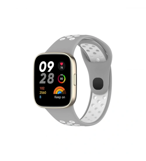 Newface Xiaomi Redmi Watch 3 Spor Delikli Kordon - Gri-Beyaz