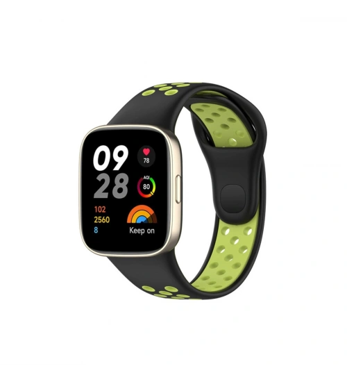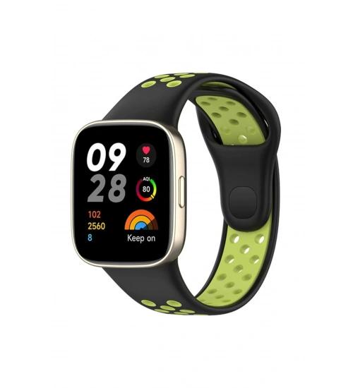 Newface Xiaomi Redmi Watch 3 Spor Delikli Kordon - Siyah-Yeşil
